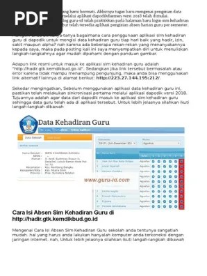 Aplikasi daftar kehadiran guru dan tenaga kependidikan merupakan salah satu tanggung jawab kepala sekolah, apabila seorang kepala sekolah tidak memiliki kesempatan atau karena kepala sekolah tersebut tidak mengerti akan komputer, kepala sekolah dapat menunjuk seorang guru yang menguasai komputer, baik dari operator sekolah yang ditunjuk atau gtk lain yang dipercaya sekolah. Aplikasi dhgtk digunakan untuk mencatat data absensi para guru di seluruh indonesia. Sampai saat ini direktorat jenderal guru dan tenaga kependidikan (dirjen gtk) hanya menyiapkan aplikasi entri data untuk absesnsi kehadiran guru disekolah melalui aplikasi hadir gtk. Jan 01, 2018 · 1. Aplikasi ini diharapkan dapat dimanfaatkan pemda/dinas pendidikan untuk memastikan kehadiran guru yang akan dibayarkan tunjangan profesinya.