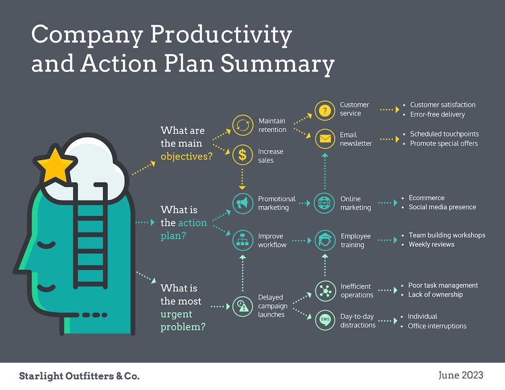 A company must set marketing objectives, measure performance against those objectives, and then take corrective action if needed. A marketing plan is a road map for achieving goals. Easily manage your marketing project with the help of marketing action plan template, download in excel, edit in google sheets or gantt chart online. Base for the next plan, as well arranges specific marketing action, which. Sample sales and marketing action plan · marketing communication action plan example · basic social media marketing action plan · simple development & marketing . Your marketing action plan will guide you forward and help you adjust when necessary. This is an annual calendar template that shows . Marketing action plan (click on the template to edit it online). Assume further that a primary selling point is the . Marketing plan is an important element in a company business plan. This sales and marketing plan template facilitates planning around sales goals and promotional activities. Executive summary · company description · market analysis · organization and management · service or product line · marketing and sales · funding request · financial . These activities include market research and analysis, product development, pricing, advertising, promotions, publicity, sales and customer service.